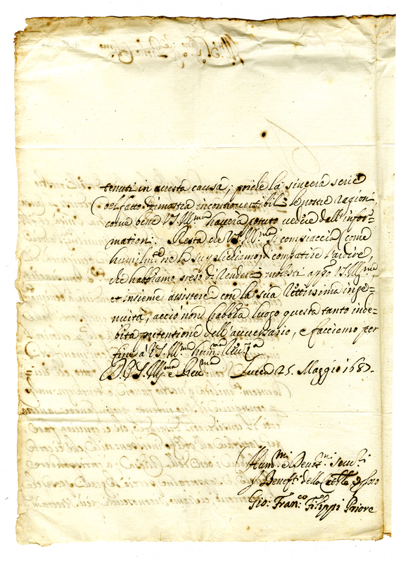Lettera di Giovanni Francesco Filippi a Giovanni Francesco ALbani (1685 maggio 25)