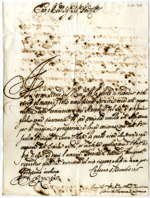 Lettera di Nicolò vescovo di Cassano al cardinale Annibale Albani (1716 dicembre 5)