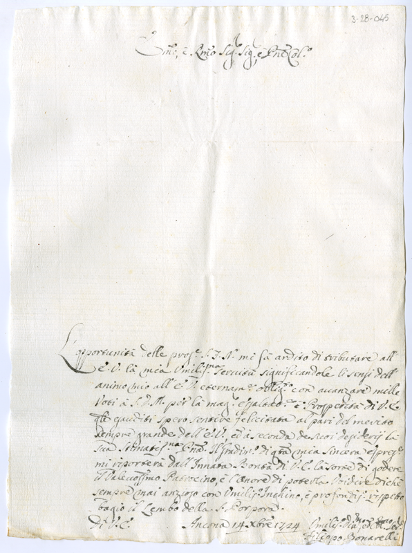 Lettera di Filippo Bonarelli al cardinale Annibale Albani (1724 dicembre 14)