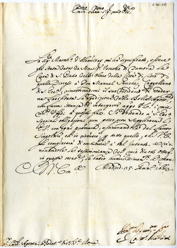 | dc.description | Chiede di facilitare l'assegnazione del beneficio parrocchiale di san Pietro delle'Olmo della città di Zamora a don Manuele Sanches | |