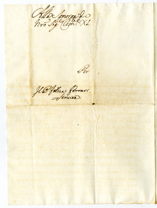 Lettera di padre Felice Ferrari a papa Clemente XI (1700-1721)