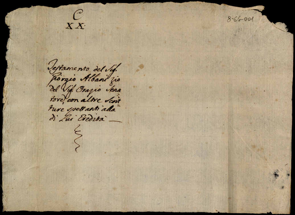 Testamento del signor Giorgio Albani zio del signor Orazio senatore, con altre scritture spettanti alla di lui eredità