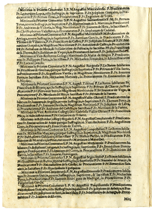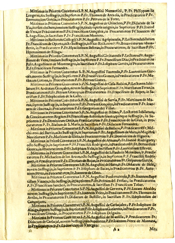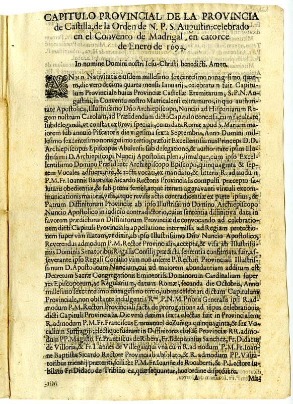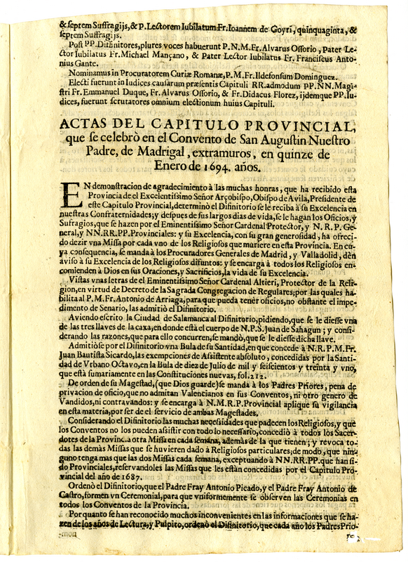 Capitulo provincial de la provincia de Castilla, de la orden de N.P.S. Augustin; celebrado en el Convento de Madrigal, en catorce de enero de 1694