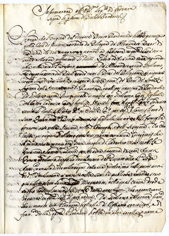 Informazione al legato di Ferrara sopra la persona di Giulio Bardocchi (1675)