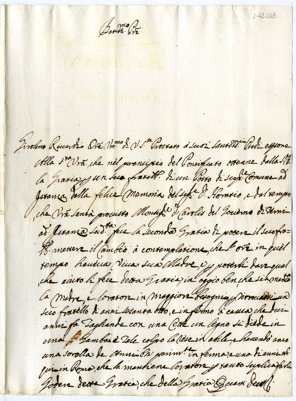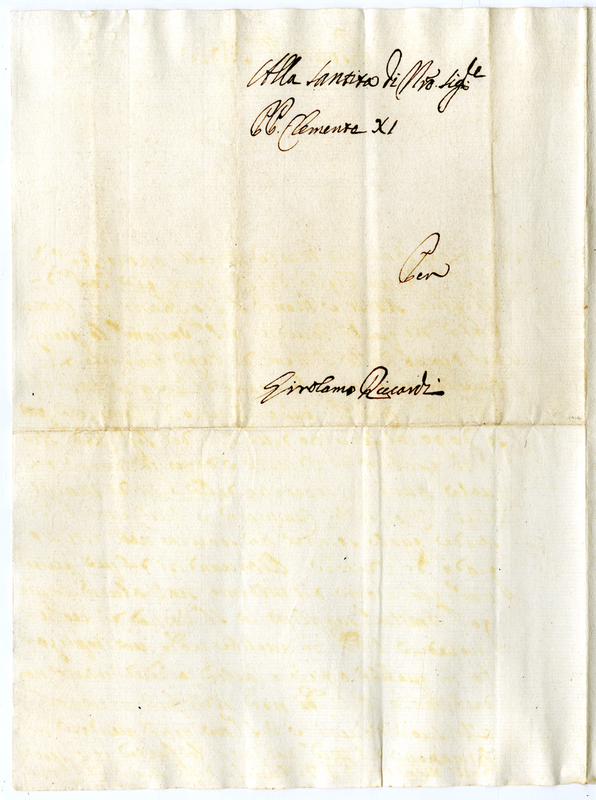 Lettera di Girolamo Riccardi a papa Clemente XI (1700-1721)