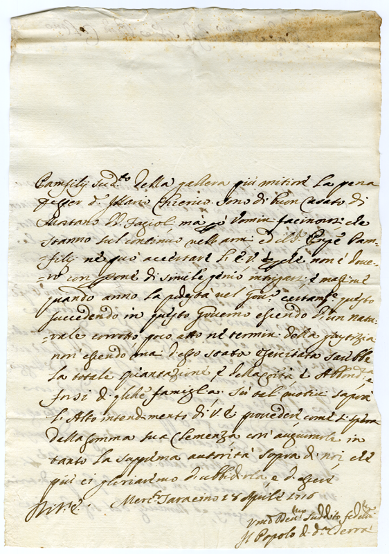 Lettera del Popolo di Mercato Saraceno al Cardinale Annibale Albani (1716 aprile 18)