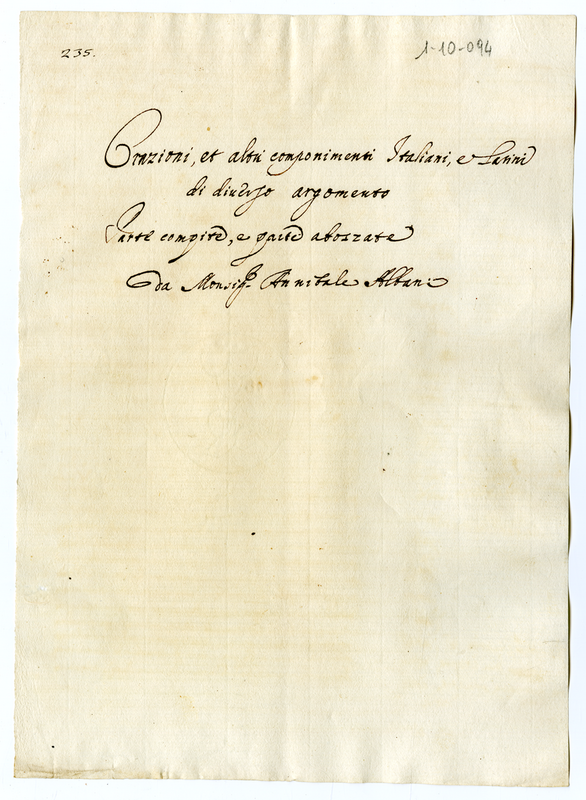 Orazioni, et altri componimenti Italiani, e Latini di diverso argomento Parte compite, e parte abozzate da Monsignor Annibale Albani