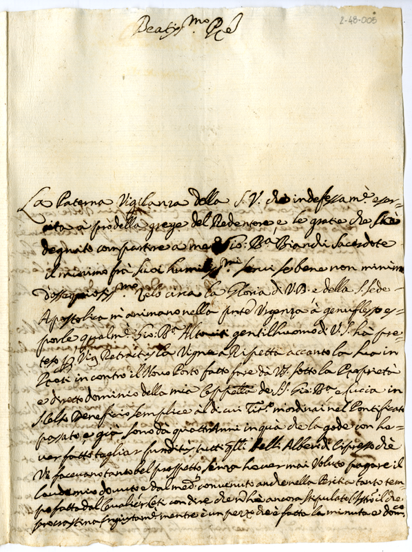 Lettera del sacerdote Giovanni Battista Bianchi a papa Clemente XI (1700-1721)