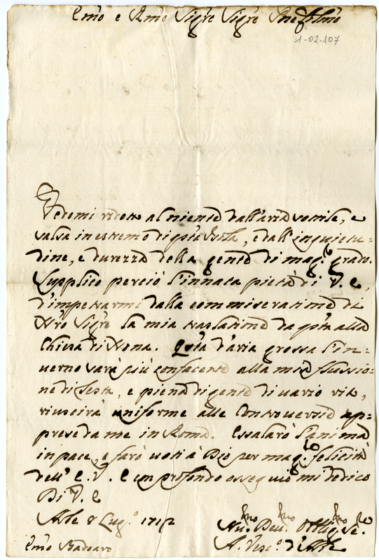 Supplica del vescovo di Arbe al cardinale Badoaro nella quale richiede di essere trasferito dalla chiesa di Arbe a quella di Nona.