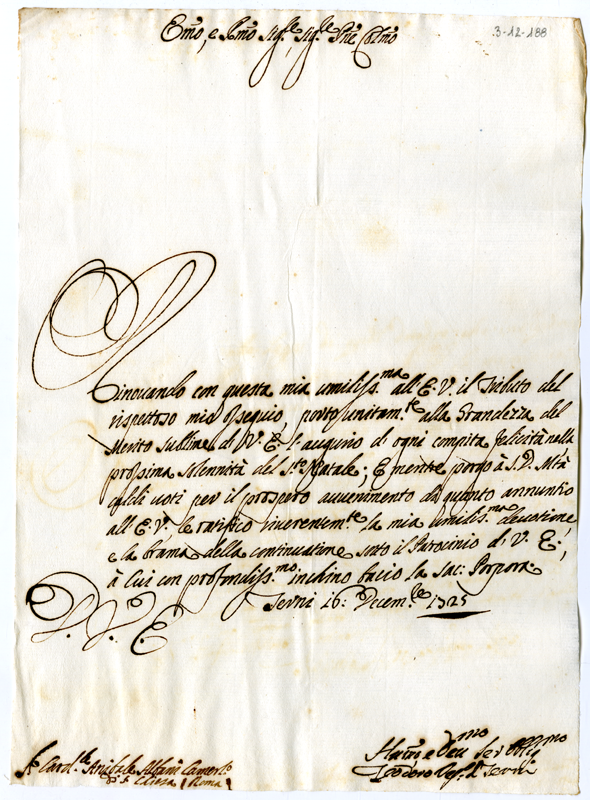 Lettera di Teodoro vescovo di Terni al cardinale Annibale Albani (1725 dicembre 16)
