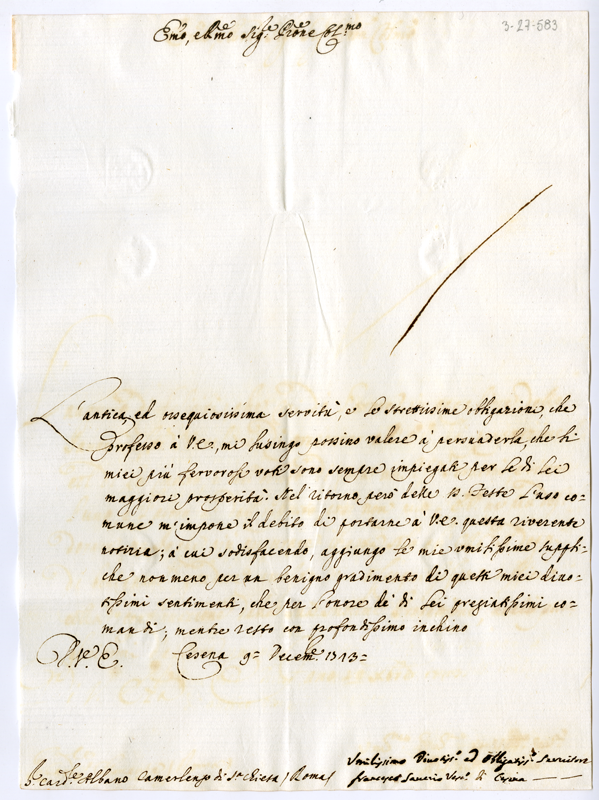 Lettera di Francesco Saverio vescovo di Cesena al cardinale Annibale Albani (1723 dicembre 9)