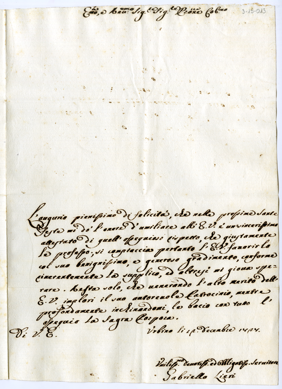 Lettera di Gabriello Lieri al cardinale Annibale Albani (1727 dicembre 12)