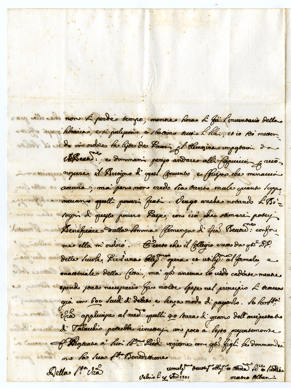 Lettera di Orazio Albani junior a papa Clemente XI (1701 ottobre 8)