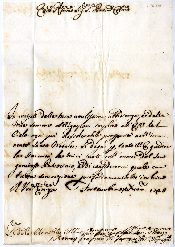Lettera di fra Francesco Maria Serralli al cardinale Annibale Albani (1725 dicembre 12)