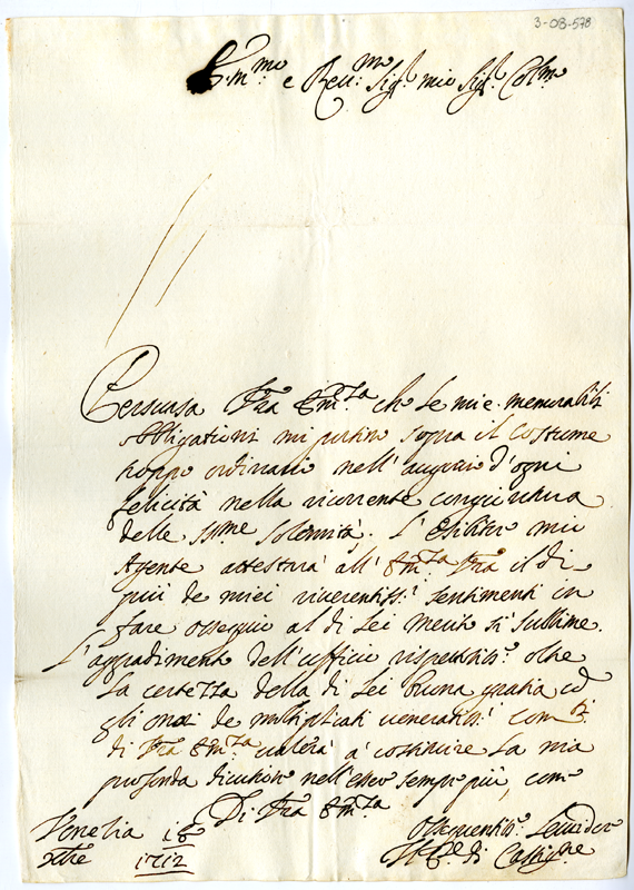 Lettera del principe di Castiglione al cardinale Annibale Albani (1712 dicembre 18)