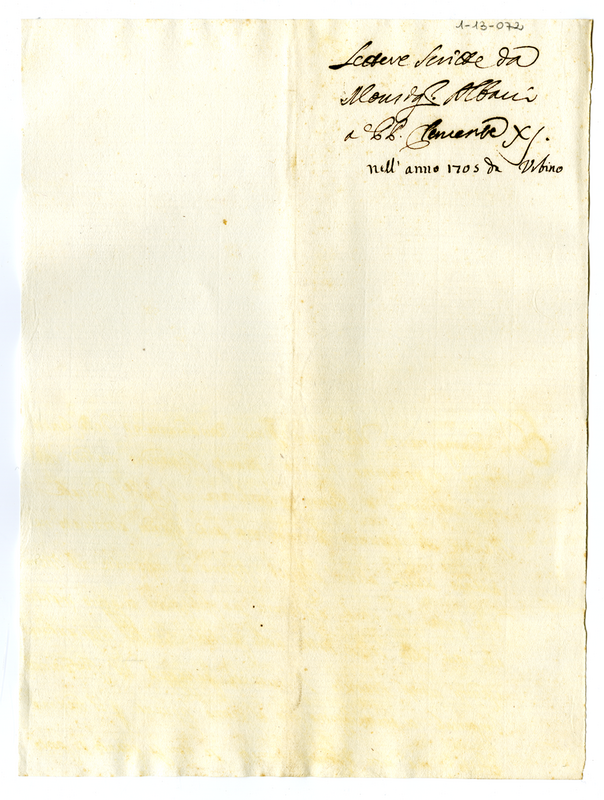 Lettere scritte da Monsignor Albani a PP. Clemente XI nell'anno 1705 da Urbino