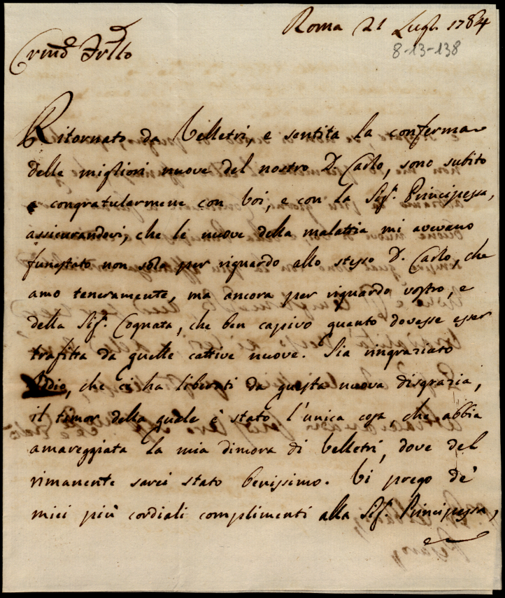Lettere diverse ricevute in Colbordolo, Pesaro e Senigallia nel 1784