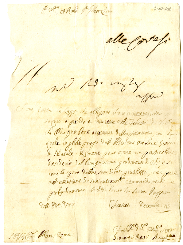 Lettera di Giovanni Rossi al cardinale Annibale Albani (1715 dicembre)