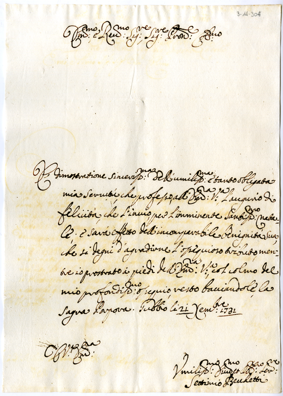 Lettera di Settimio Becchetti al cardinale Annibale Albani (1731 dicembre 21)