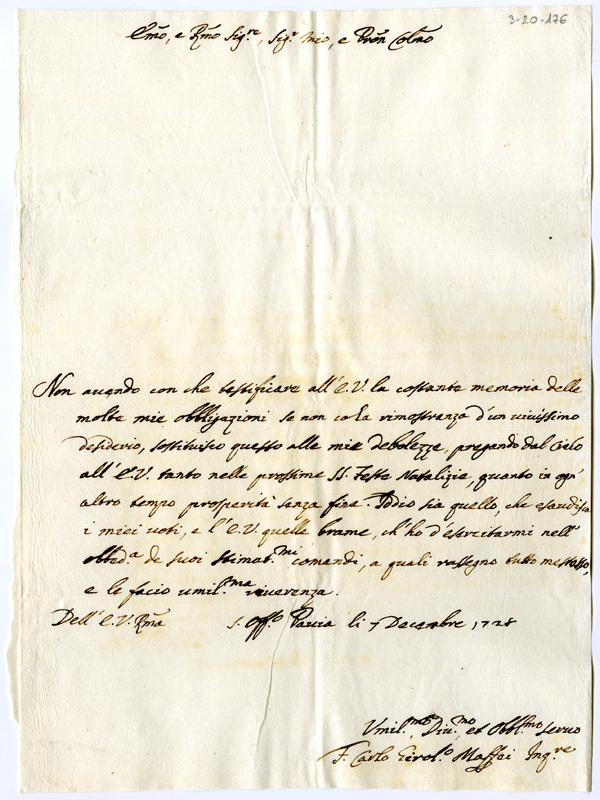 Lettera di Carlo Girolamo Maffei al cardinale Annibale Albani (1728 dicembre 7)