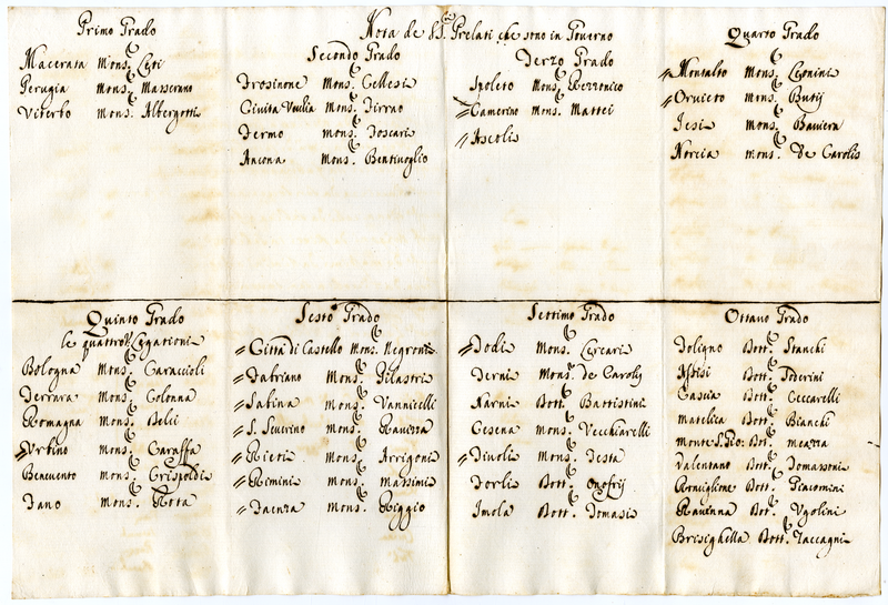 Nota de Signori Prelati che sono in Governo (1700-1721)