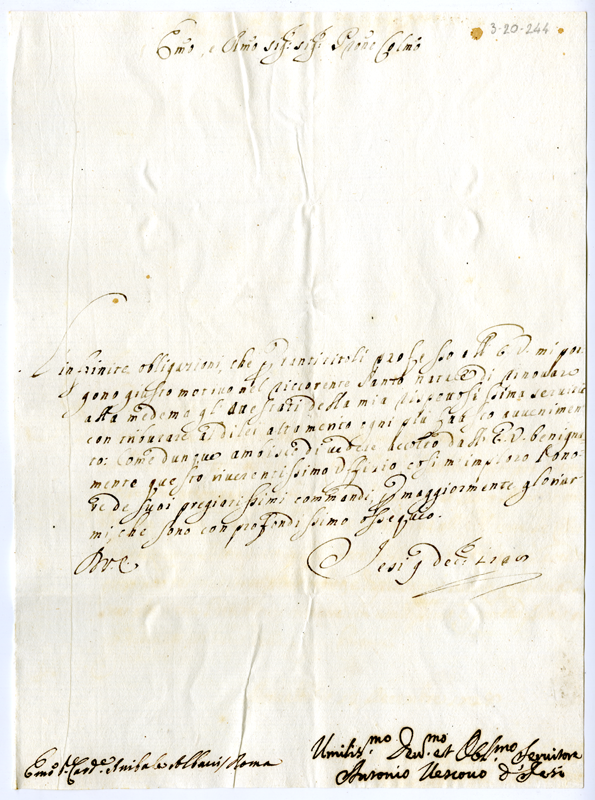 Lettera di Antonio vescovo di Jesi al cardinale Annibale Albani (1728 dicembre 9)