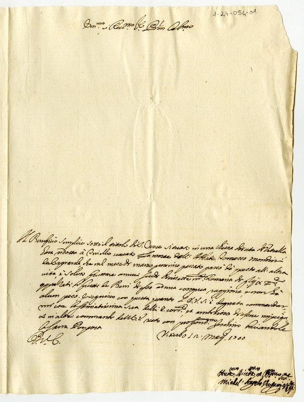 Lettera di Michel'Angelo Vergari ad un Cardinale (1700 maggio 12)