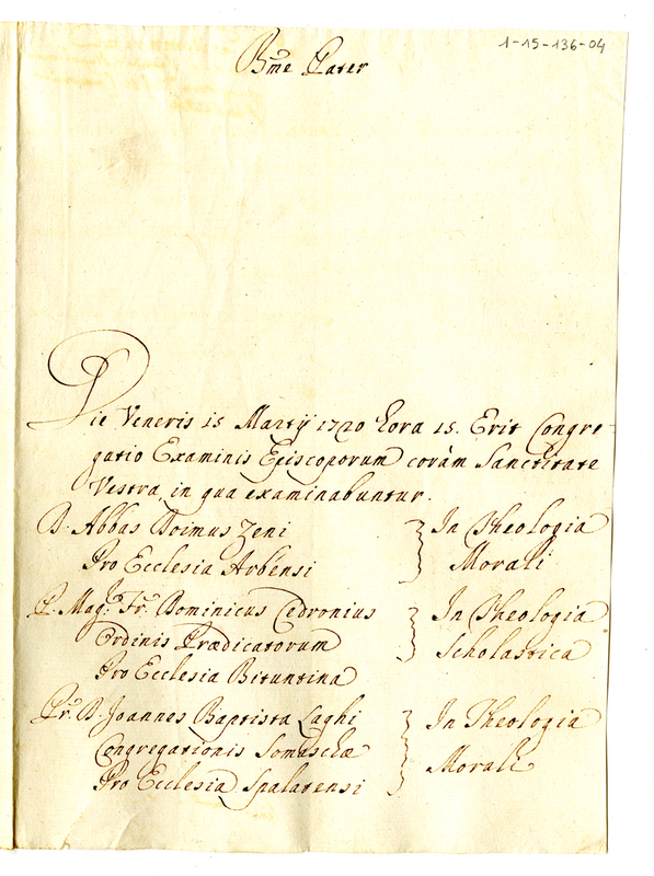 Comunicazione a Clemente XI dell'avvenuto esame di diversi soggetti per l'elezione a vescovi