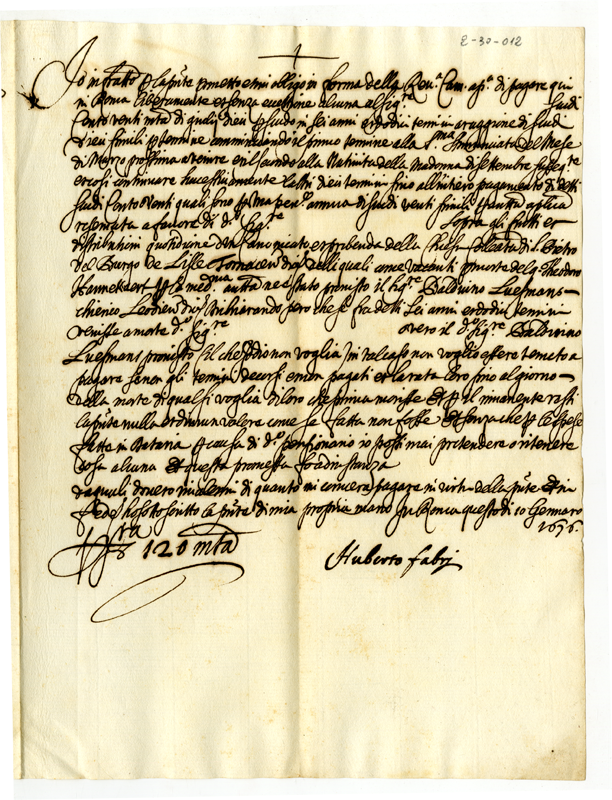 | dc.title | Dichiarazione di Uberto Fabbri di riconoscere alcune pensioni a favore di terzi (1676 gennaio 10) | |