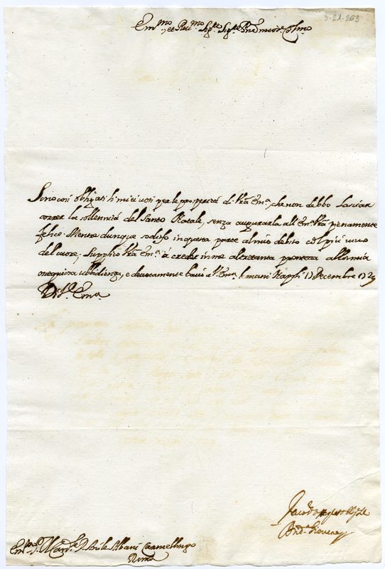 Lettera di Andrea Giovene al cardinale Annibale Albani (1729 dicembre 17)
