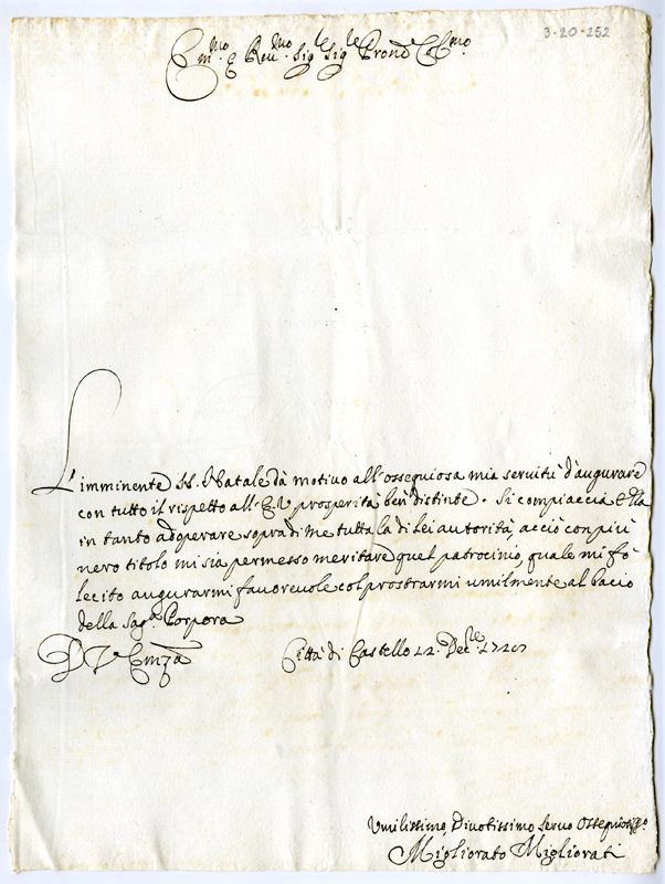 Lettera di Migliorato Migliorati al cardinale Annibale Albani (1728 dicembre 12)
