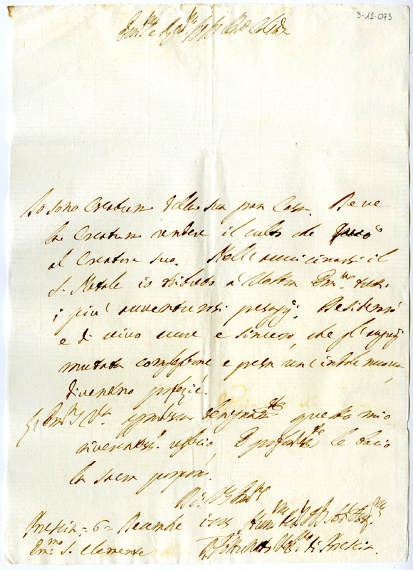lettera di Fortunato vescovo di Brescia al cardinale Annibale Albani (1725 dicembre 6)