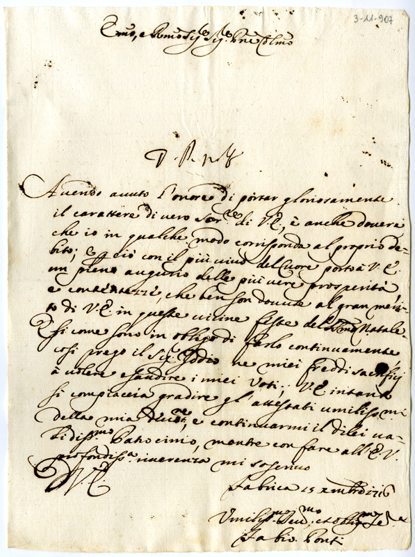 Lettera di Fabio Ponti al cardinale Annibale Albani (1716 dicembre 15)