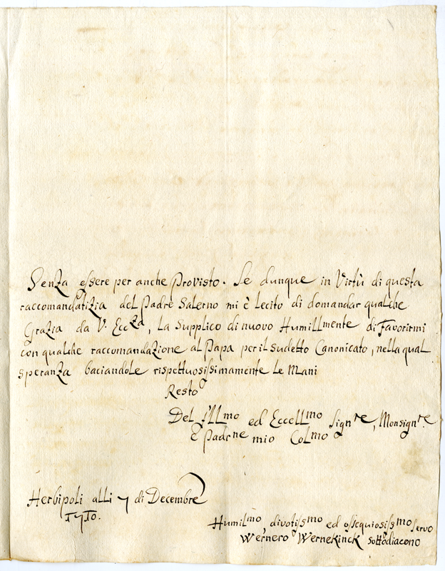 Lettera di Wernero Wernekinck ad Annibale Albani (1710 dicembre 7)