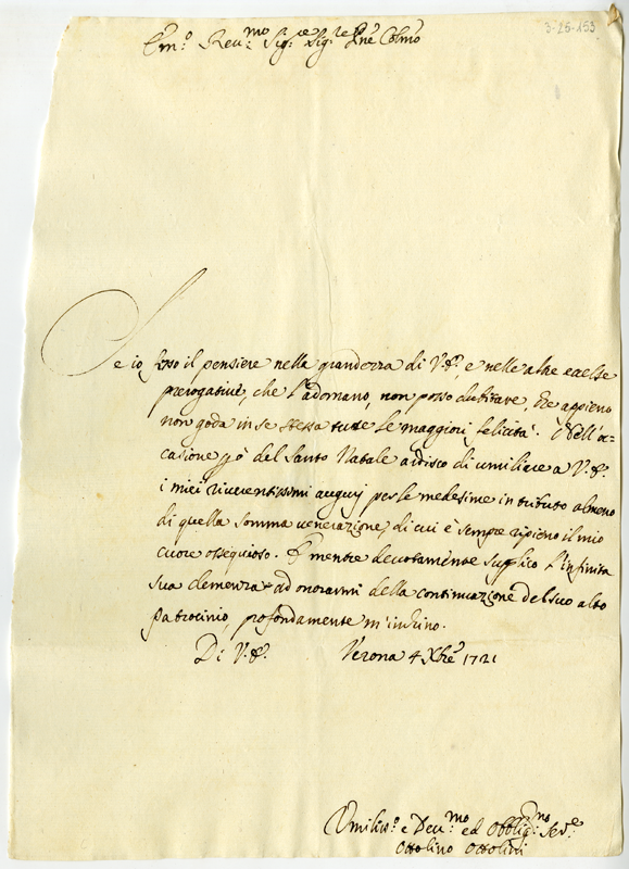 Lettera di Ottolino Ottolini al cardinale Annibale Albani (1721 dicembre 4)