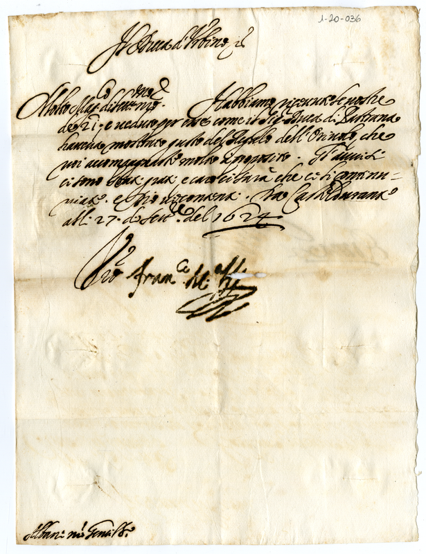 Lettera di Francesco Maria duca di Urbino a Orazio Albani (1624 settembre 27)