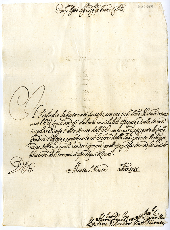 Lettera di Golino di Borbon del Monte al cardinale Annibale Albani (1731 dicembre)