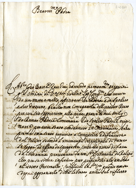 Esiliato da Roma e da Spoleto per una condanna in contumacia chiede di essere graziato o quanto meno di poter risiedere in un proprio podere di Spoleto per poter avere i mezzi di sussistenza
