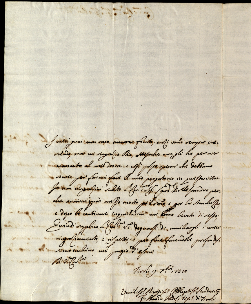 3. Lettere di diversi all'eccellentissimo signor cardinale S. Clemente dell'anno 1723, 1727 e 1728