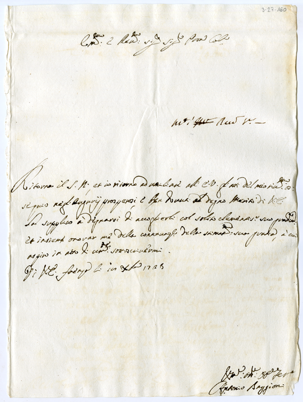 Lettera di Antonio Baggioni al cardinale Annibale Albani (1723 dicembre 18)