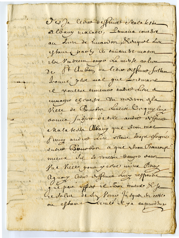 3. Lettere, e scritture, dalle quali appariscono Li Servigij fedelmente resi alla Sede Apostolica da Malatesta Albani sotto il Pontificato d'Urbano Ottavo, tanto in tempo di Guerra, quanto in tempo di pace alla Sua morte seguita in Francia Li 7 Ottobre 1645. Distintamente indicate ne seguenti fogli