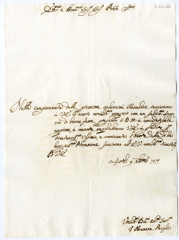 Lettera dei novanta pacifici della città di Forlì al cardinale Annibale Albani (1717 dicembre 9)