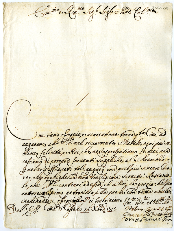 Lettera al cardinale Annibale Albani (1715 dicembre 12)