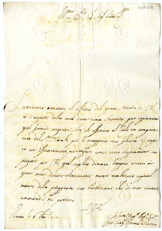 Lettera di Giovanni Francesco vescovo di Verona ad Annibale Albani (1710 dicembre 6)