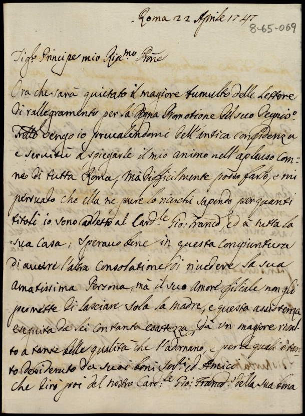 Lettere ricevute in Urbino dal Signor Principe Orazio Albani ultimo di questo nome nell'anno 1747