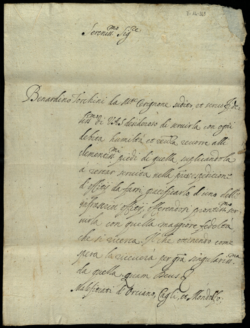 Lettere, memoriali al Serenissimo Principe d'Urbino appartenenti alla carica di segretario di Giustizia