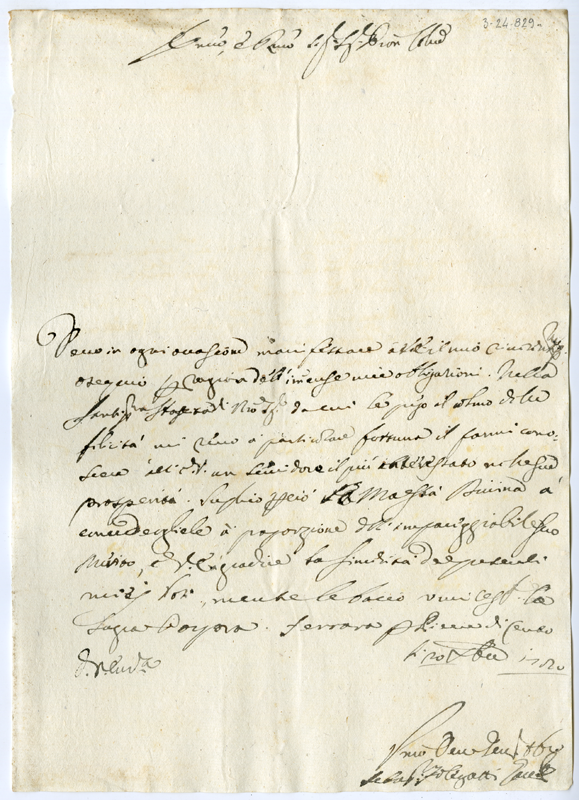 Lettera di Sebastiano Folegatti al cardinale Annibale Albani (1720 dicembre 20)
