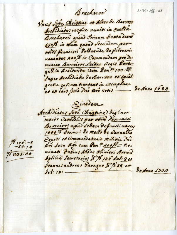 Sulle pensioni riservate a Fabio Olivieri (1704)