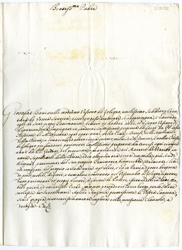 Lettera del vescovo di Foligno a Clemente XI (1717-1721)