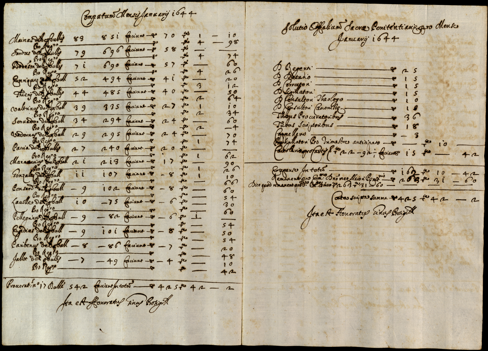 Note contabili relative agli interessi della Penitenziaria spettanti al cardinale S. Onofrio